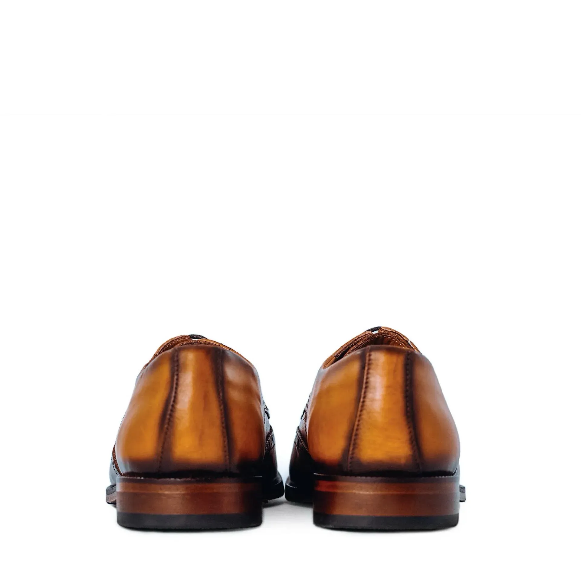 Dante es un Wingtip semi-brogué, fácilmente la variación más reconocible de una combinación suave, cómoda y duradera en nuestro zapato más vendido. Este Wingtip punta de ala contemporáneo cuenta con perforaciones cinceladas y cosidas a mano. La suela es de cuero con un inserto de goma para mayor aga...