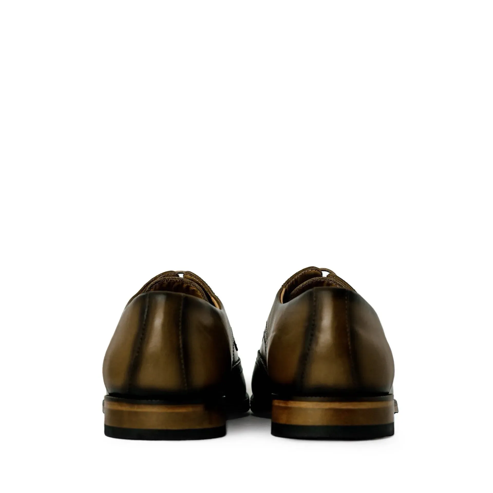 Dante es un Wingtip semi-brogué, fácilmente la variación más reconocible de una combinación suave, cómoda y duradera en nuestro zapato más vendido. Este Wingtip punta de ala contemporáneo cuenta con perforaciones cinceladas y cosidas a mano. La suela es de cuero con un inserto de goma para mayor aga...